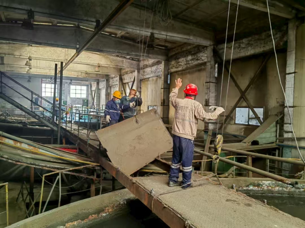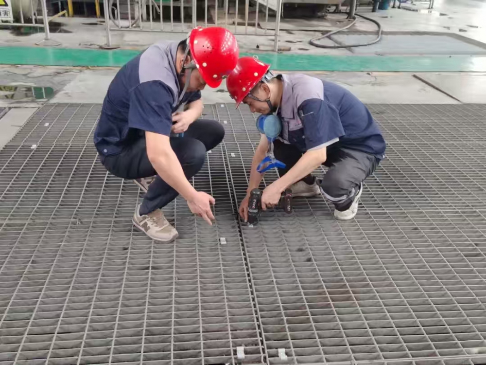 突出問題精準治理。一選廠已生產(chǎn)運行多年,濃密車間人行通道地板腐蝕嚴重,數(shù)次進行修修補補,存在較大安全隱患。為徹底解除隱患,公司利用停機間隙,籌集資金、人力、物資,對70米通道的地板、護欄、橫梁和支柱進行全面拆除更換,有效保障了作業(yè)區(qū)域安全;同時,為汲取內蒙古“7.23”格柵板脫落事故的教訓,切實保障員工及參觀人員的生命安全,公司購買8000套固定卡扣,對兩個選廠磨浮車間格柵板進行加固處理,并在參觀通道設立了安全提示牌。