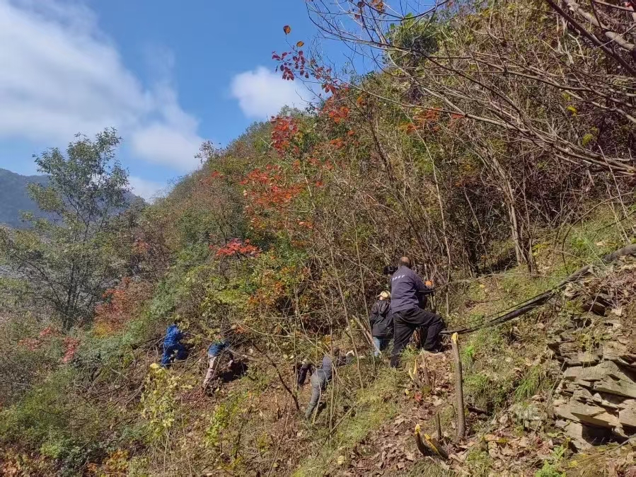 險(xiǎn)情即命令,行動(dòng)顯擔(dān)當(dāng)。面對(duì)復(fù)雜地形與植被纏繞的“攔路虎”,金米黨支部想方設(shè)法、果斷出擊,由黨員帶頭,組織全體在崗人員趕赴現(xiàn)場(chǎng)開展義務(wù)整治。他們自帶砍柴刀、繩索等工具,對(duì)嚴(yán)重影響施工安全的荊棘雜草進(jìn)行全面清理。