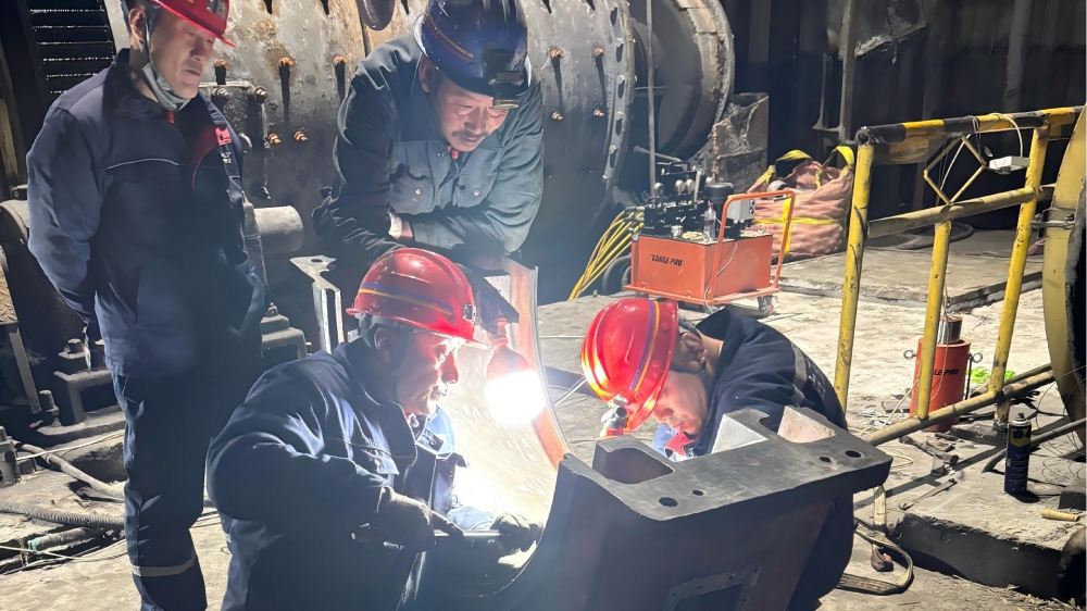 故障發(fā)生后,白玉銀興公司經(jīng)理田東清迅速抵達(dá)現(xiàn)場,根據(jù)設(shè)備故障狀況進行現(xiàn)場研判并采取果斷措施進行停機搶修。在搶修現(xiàn)場,黨員干部主動亮身份、扛重?fù)?dān),充分發(fā)揮先鋒模范作用,成為搶修隊伍中的“主心骨”。田東清帶領(lǐng)維修團隊趴在設(shè)備旁仔細(xì)排查故障點,在刮瓦環(huán)節(jié)精細(xì)操刀,憑借多年豐富經(jīng)驗和專業(yè)技術(shù)儲備,勾畫出完美的弧線。為了加快搶修進度,搶修人員放棄休息時間,輪班作戰(zhàn)、每天連續(xù)工作16小時,累了就趴在桌上短暫小憩,始終堅守在搶修一線。食堂將飯菜、飲用水送到現(xiàn)場,確保搶修人員有充沛的體力。